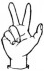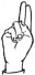 На ћирилици написано ПАУН КАИЋ састоји се из 8 слова [?]. Исписано ћириличном једноручном азбуком за глувонеме: